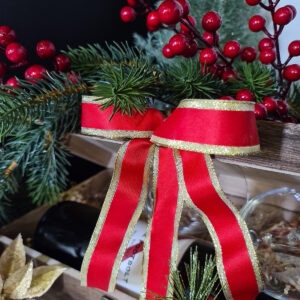 200-191REDRed Satin Ribbon w/Gold Metallic Wired Edge – 25mm x 15mtr