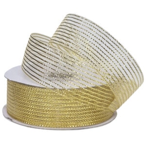 200-225GLDFine Mesh with Metallic Thread Ribbon – 25mm x 25mtrs / Gold