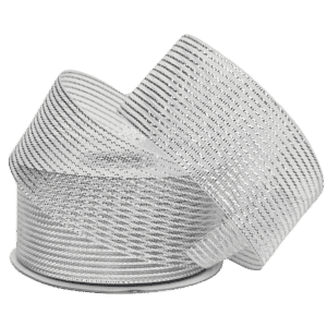 200-203SILStripe Mesh Ribbon w/Wired Edge – 3.8cm x 22.8mtrs / Silver