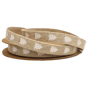 200-287Hemp with Christmas Tree Print Ribbon15mm x 15m