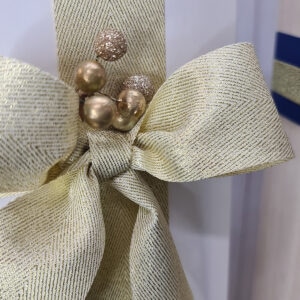 103-138GLDMetallic Christmas Tree Ribbon (Wired edge) – 38mm x 9.1m / Gold/White