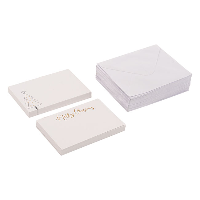 Christmas Tree / Merry Christmas Cards w/Envelopes x 50 / White