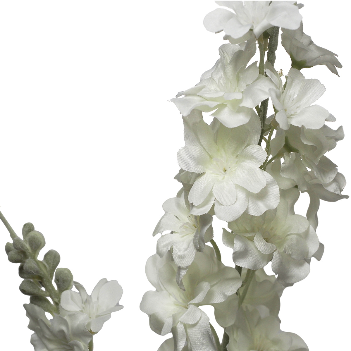 Delphiniums are a versatile flower as they can add height and drama to bouquets and floral arrangements, making them a popular choice for wedding and event arrangements. Our new Danni features a flocked stem, making the colour a very soft green/white tone. Great option for concealing when adding to White floral installations and arrangements.  .