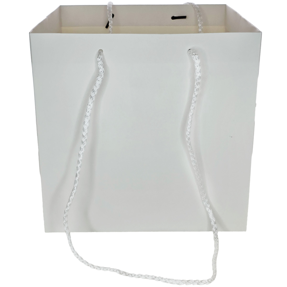 Present your floral arrangements and gifts in style with the Flower Bag with Cord Handles – White. Measuring 23cm x 23cm x 20cmH, this square gift bag offers the perfect blend of elegance and practicality, making it a must-have for florists, giftware retailers, and event planners. Crafted with a sleek white finish, it adds a timeless, sophisticated touch to any presentation, ensuring your flowers or gifts are displayed beautifully.
