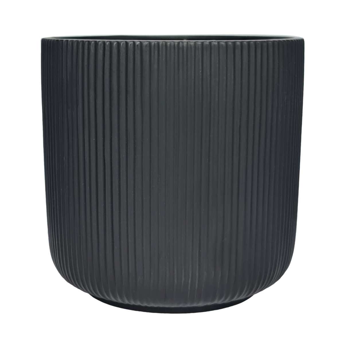 Its ribbed outer design provides a sleek, modern texture, while the matte satin Black finish creates a sophisticated backdrop for any arrangement. The deep neutral tone highlights vibrant florals, artificial stems, or lush greenery, ensuring a stylish balance between practicality and aesthetic appeal.