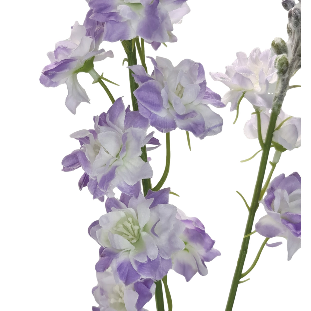 Purple delphinium is a standout choice for weddings, special events, and feature arrangements—pair it with whites and creams for a classic, elegant look, or mix it with blush, lilac, and pastel tones for a softer romantic palette. For modern styling, combine it with deep greens and neutral wraps to create contrast and height. Use a few stems in a tall vase for an instant statement, or weave them through larger installs to build dimension and colour layering.
