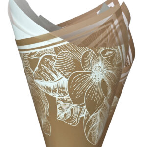 716-041LTEFrosted Floral Border Poly Wrap – 50x70cm x 100 sheets / Latte