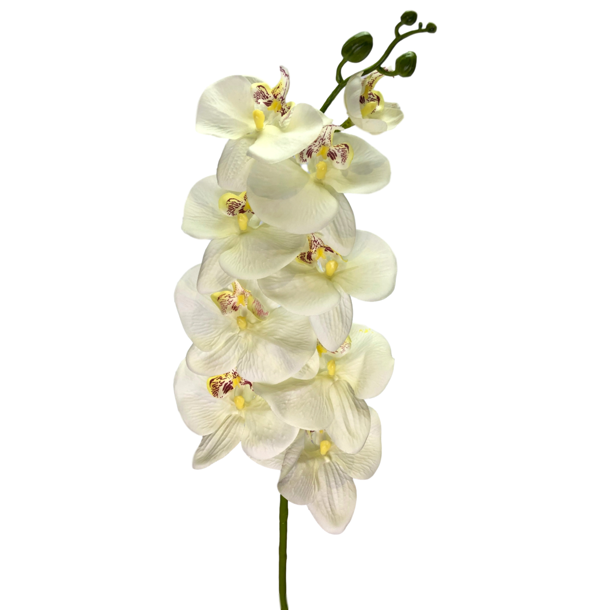 This artificial Phalaenopsis Orchid Spray in White, with 9 flowers, looks stunning in flower arrangements, bridal bouquets and floral event installations. Also available in White.