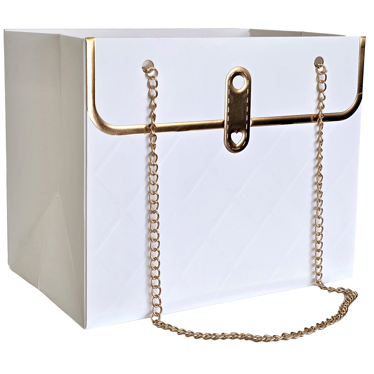 Chain Handle Handbag Flower Bag 18 x 12 x 15cmH (pk10) / White