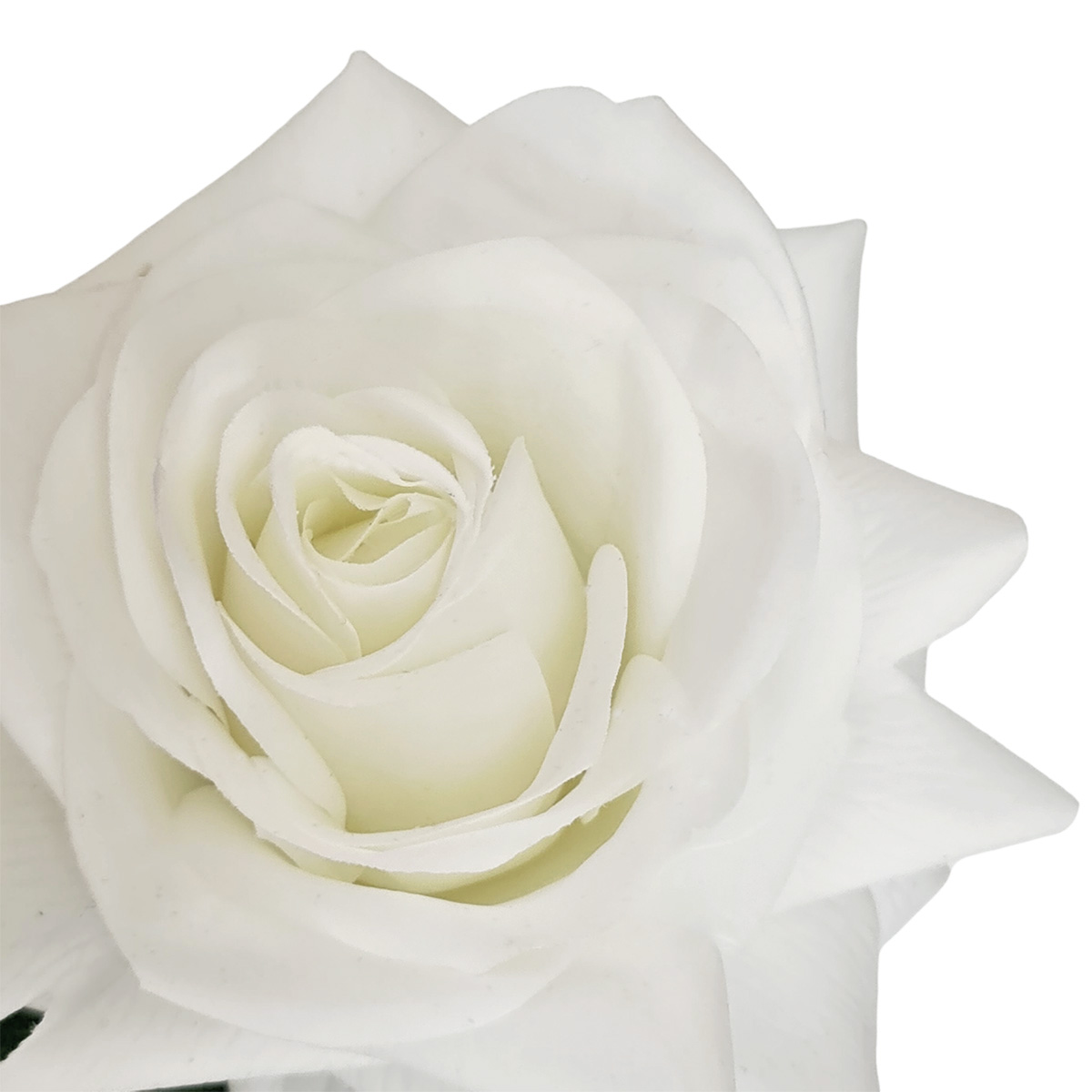 The Emma Real Touch Rose measures 70cm in length and features a generously sized rose head (approx. 12cm diameter), making it ideal for tall vase arrangements, dramatic centrepieces, and feature displays. The crisp white tone suits classic wedding palettes and modern minimalist styling alike, pairing beautifully with blush, champagne, pastel accents, rich greenery, and bold feature colours for contrast.