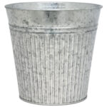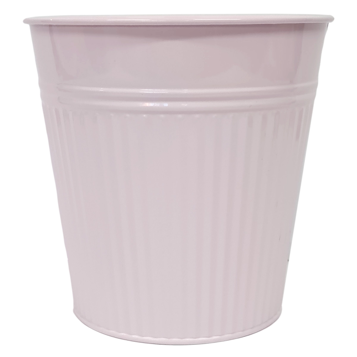 Our round ribbed metal pail bucket in Baby Pink is perfect for a rusty look. Powder coated with a gloss finish and no drainage hole, this bucket is commonly used for floral arrangements or potted plants.