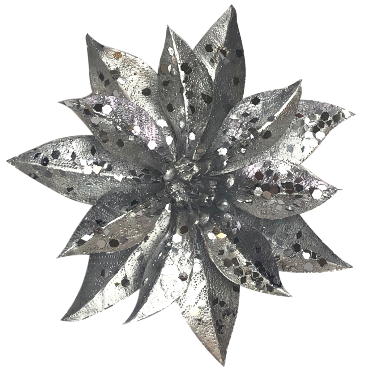 Shimmer Poinsettia w/Clip x 12 pcs – 10cmD / Silver