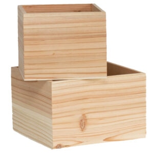 002-340NATS/2 Wooden Square Box – Lge: 17cm x 17cm x 12cmH / Natural